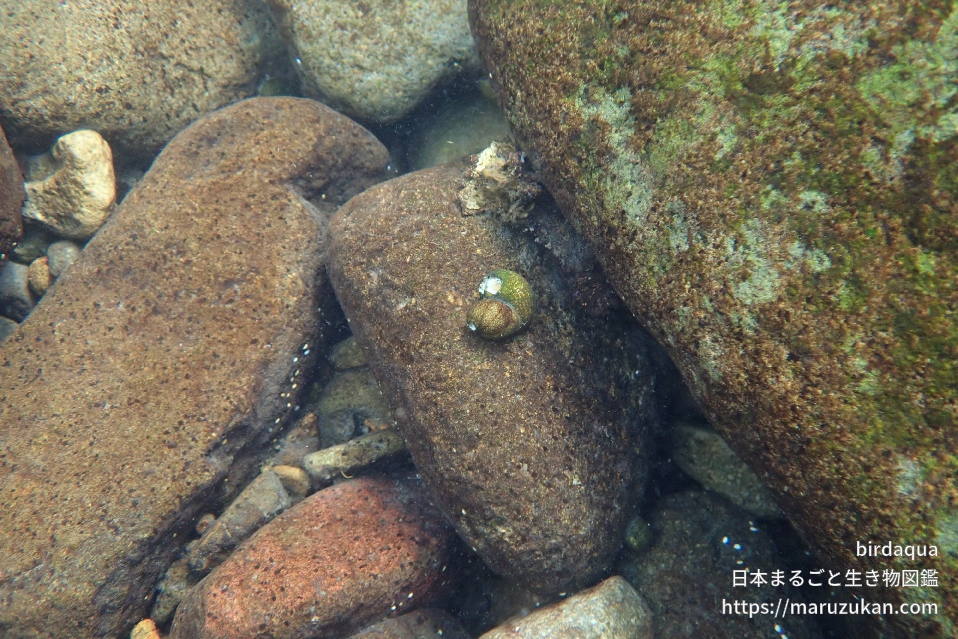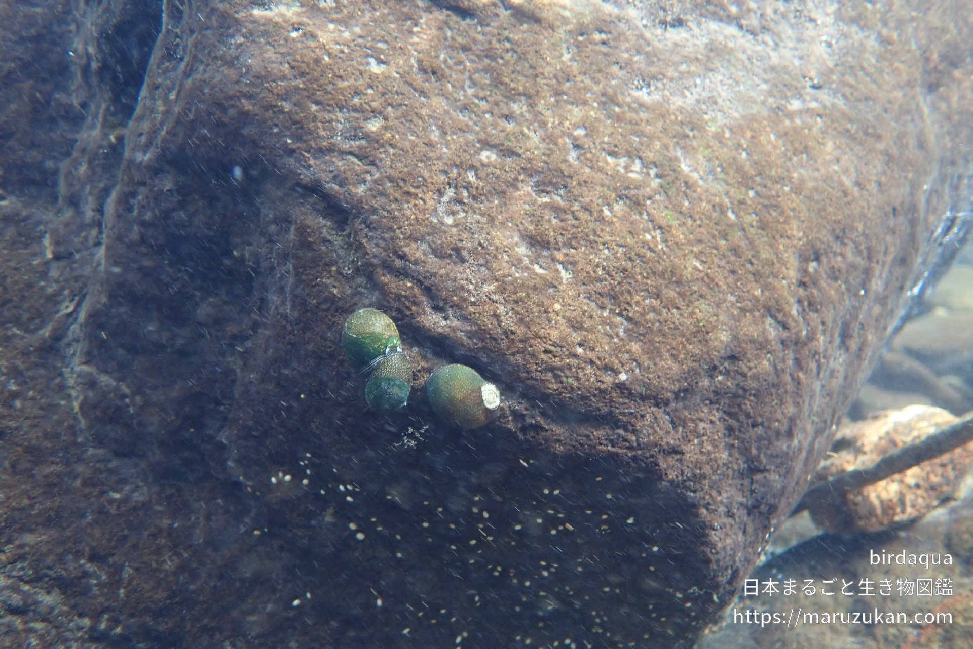 イシマキガイの画像を投稿する イシマキガイ(石巻貝) -Clithon retropictus- birdaqua 2020/05/26 (火) - 12:40 撮影日2020/05/24 地域 静岡県 撮影・捕獲場所 淡水水中 環境 天然・野生・自生 生育段階 成体 川で卵から孵って海に下り、川を上ってくる。