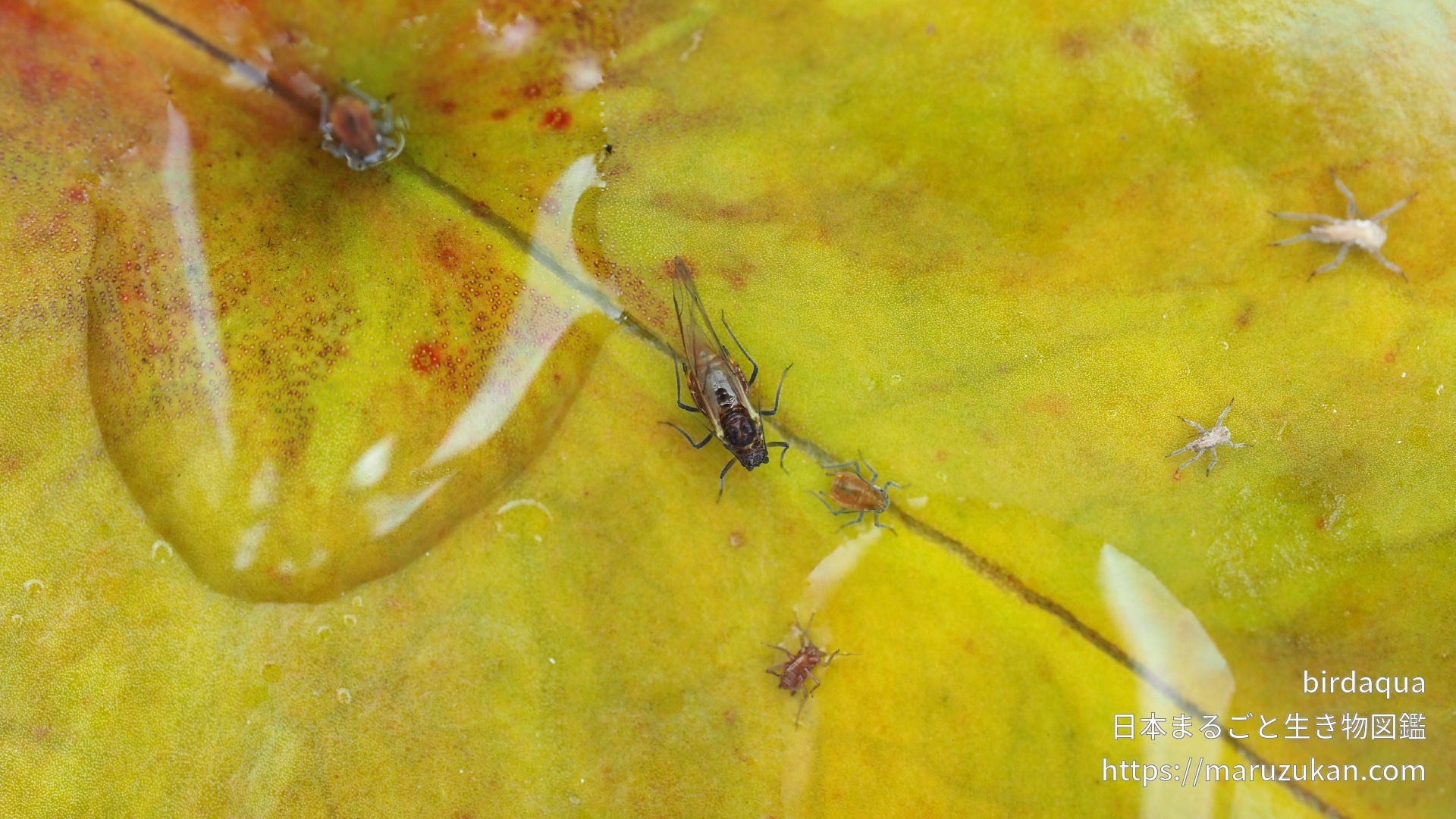クワイクビレアブラムシの画像を投稿する クワイクビレアブラムシ(慈姑括れ油虫) -Rhopalosiphum nymphaeae- birdaqua 2021/07/30 (金) - 12:48 撮影日2021/06/20 地域 静岡県 撮影・捕獲場所 庭 雌雄 雌 環境 天然・野生・自生 生育段階 成虫 同定の自信 ★★★★★(種まで確実) 有翅虫。有翅虫は飛ぶ必要があるので、ちょっとだけスマート。