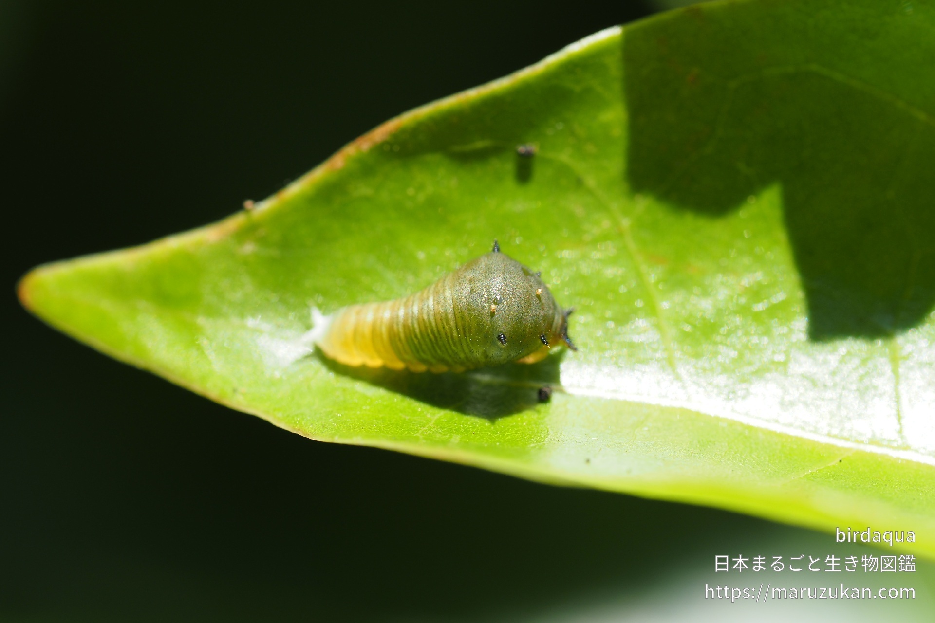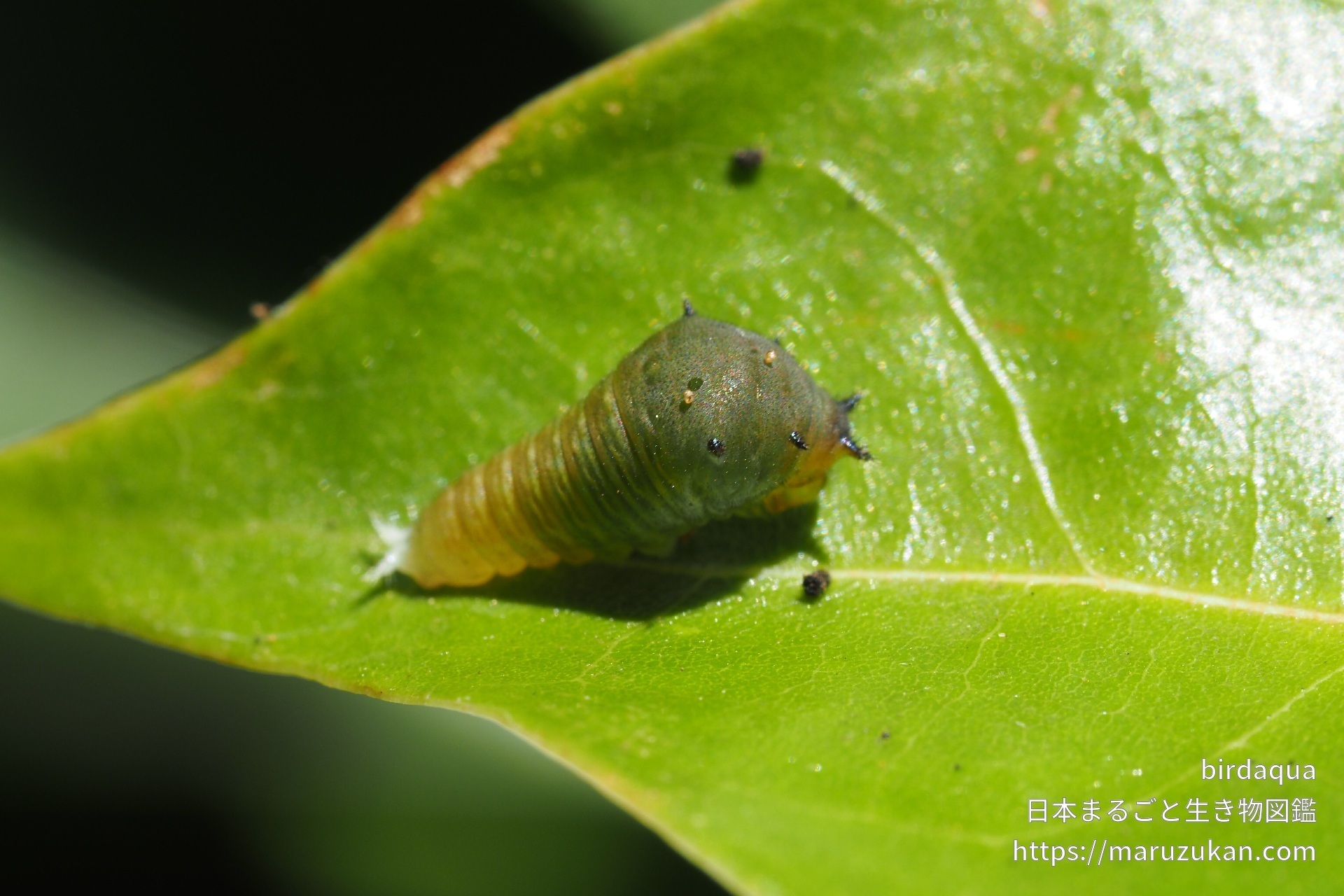 アオスジアゲハの画像を投稿する アオスジアゲハ(青筋揚羽) -Graphium sarpedon- birdaqua 2021/08/08 (日) - 09:19 撮影日2021/07/23 地域 静岡県 撮影・捕獲場所 森・林・山 環境 天然・野生・自生 生育段階 幼虫 同定の自信 ★★★★★(種まで確実) まだ1cmくらいの小さな幼虫。