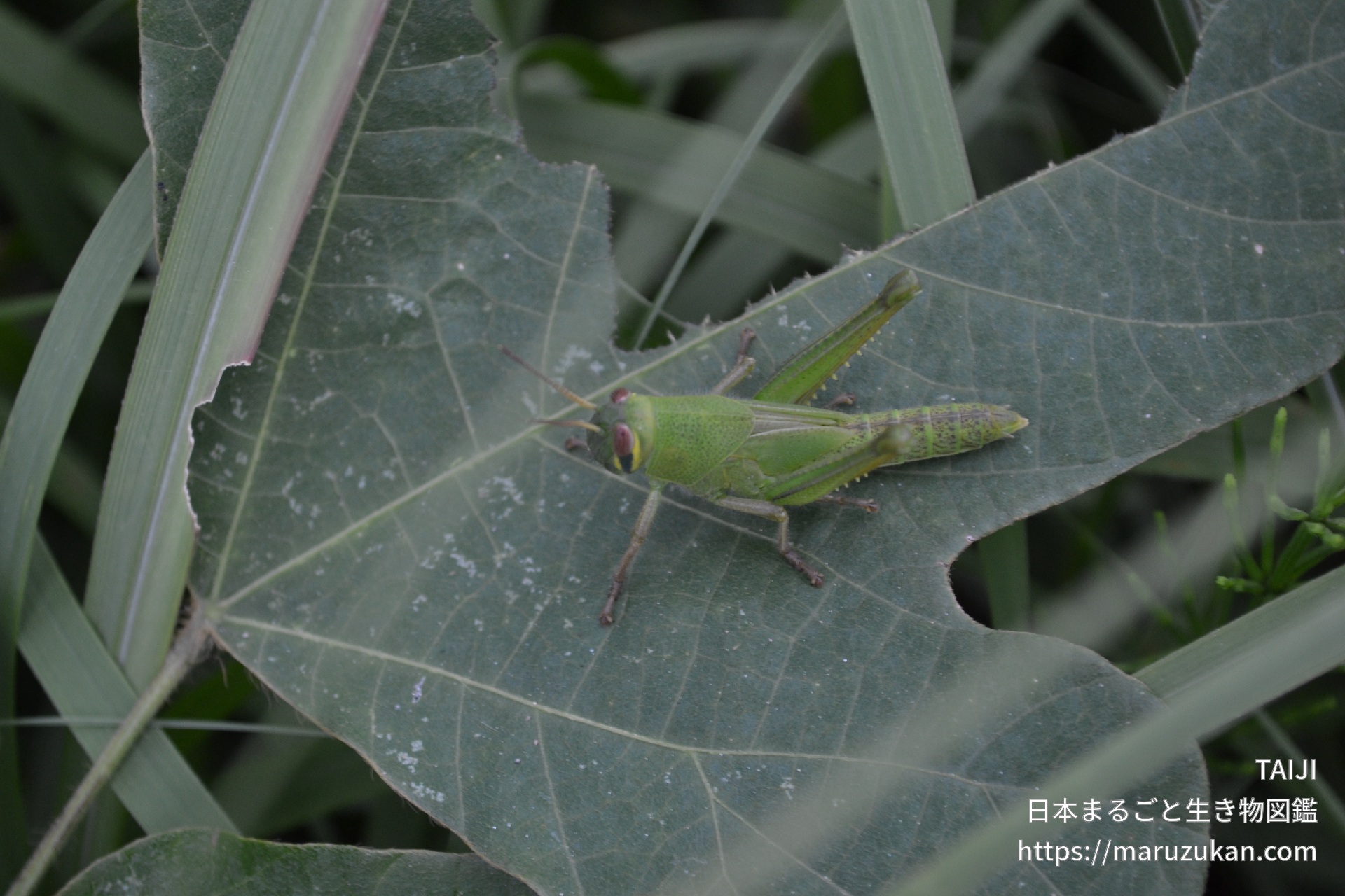 ツチイナゴの画像を投稿する ツチイナゴ(土蝗) -Patanga japonica- TAIJI 2022/09/29 (木) - 02:09 撮影日2022/09/28 地域 三重県 撮影・捕獲場所 道端 環境 天然・野生・自生 生育段階 幼体 同定の自信 ★★★★☆(種までほぼ確実) 目に特徴があり、同定しやすい…不完全変態なので、幼体ですね…