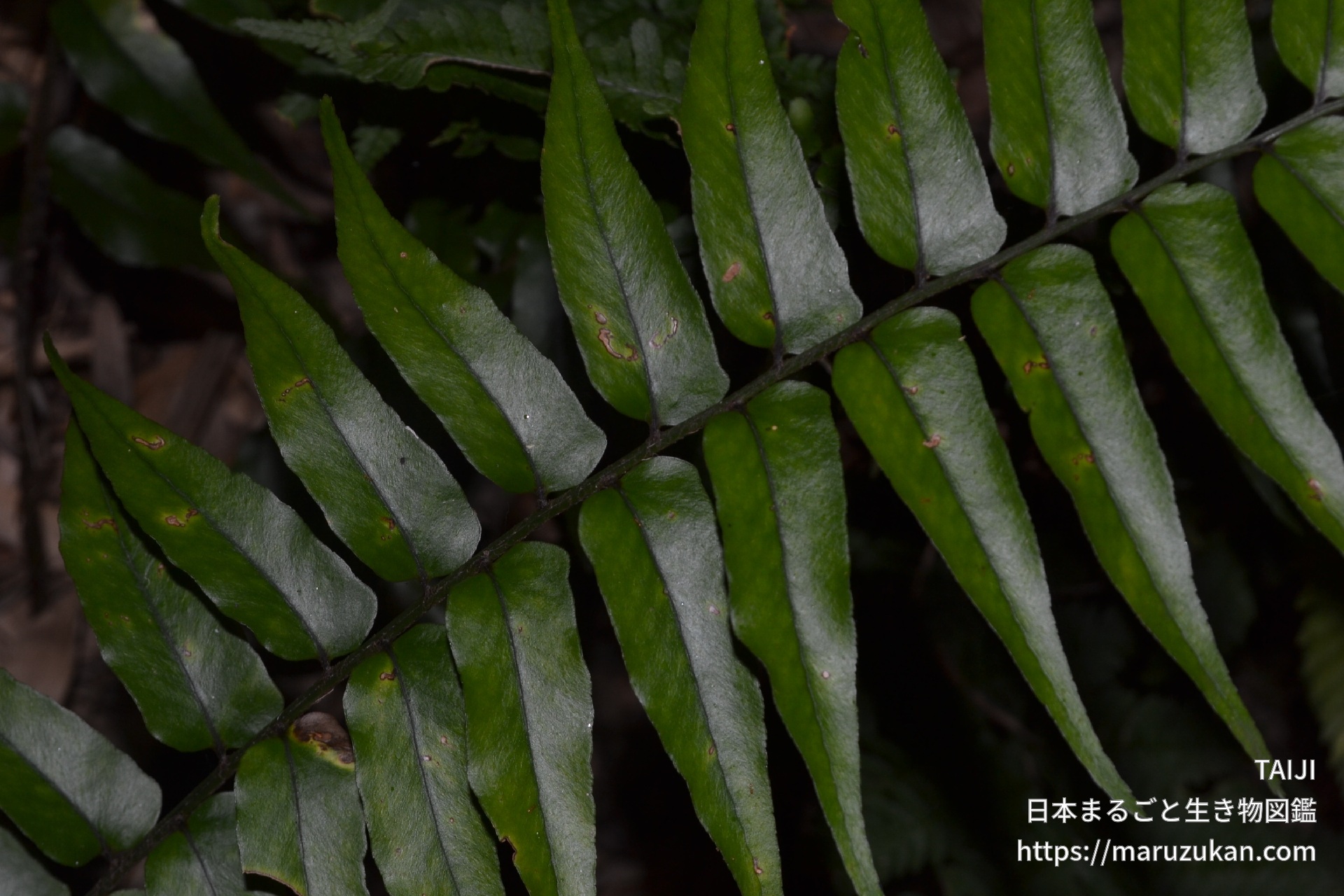 ヤブソテツの画像を投稿する ヤブソテツ(薮蘇鉄) -Cyrtomium fortunei- TAIJI 2022/11/28 (月) - 02:07 撮影日2022/11/19 地域 三重県 撮影・捕獲場所 森・林・山 環境 天然・野生・自生 生育段階 花・実以外 同定の自信 ★★★★☆(種までほぼ確実) ヤブソテツの仲間には、似たものが多いため、同定がやや困難です…