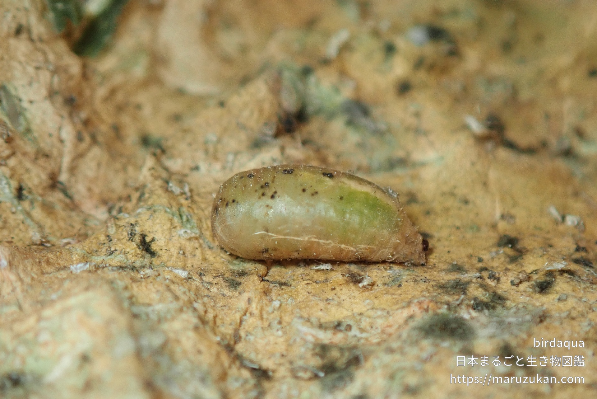 コマバムツボシヒラタアブの画像を投稿する コマバムツボシヒラタアブ(駒場六星平虻) -Scaeva komabensis- birdaqua 2023/02/19 (日) - 20:58 撮影日2023/02/06 地域 静岡県 撮影・捕獲場所 室内・ベランダ 雌雄 雄 環境 人工・飼育・栽培 生育段階 蛹 同定の自信 ★★★★☆(種までほぼ確実) 蛹もやや緑がかっている。羽化させて同定。