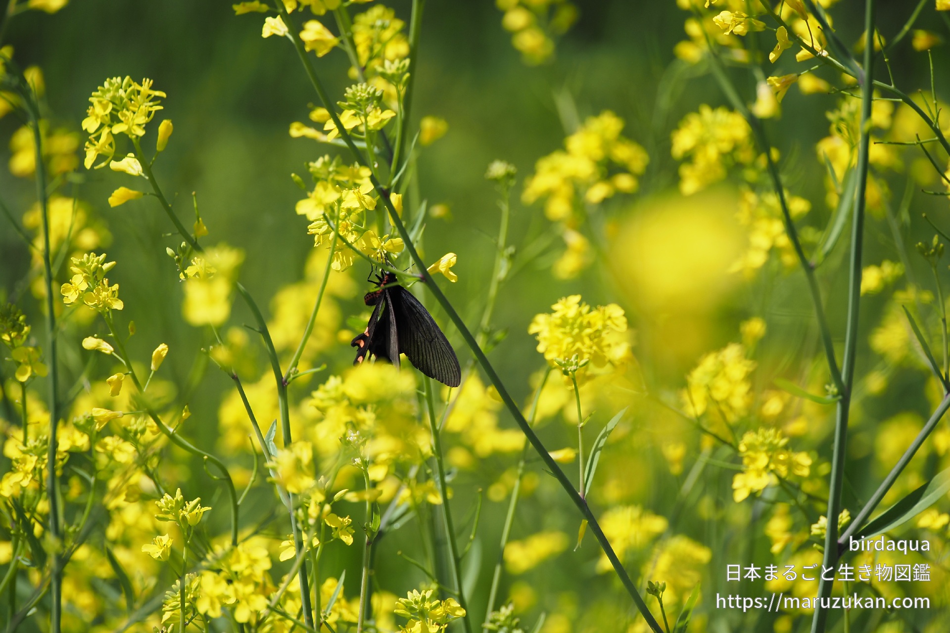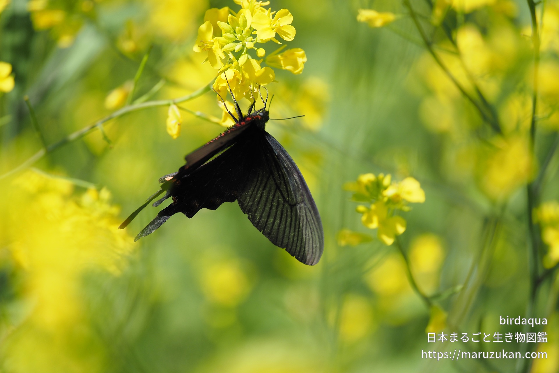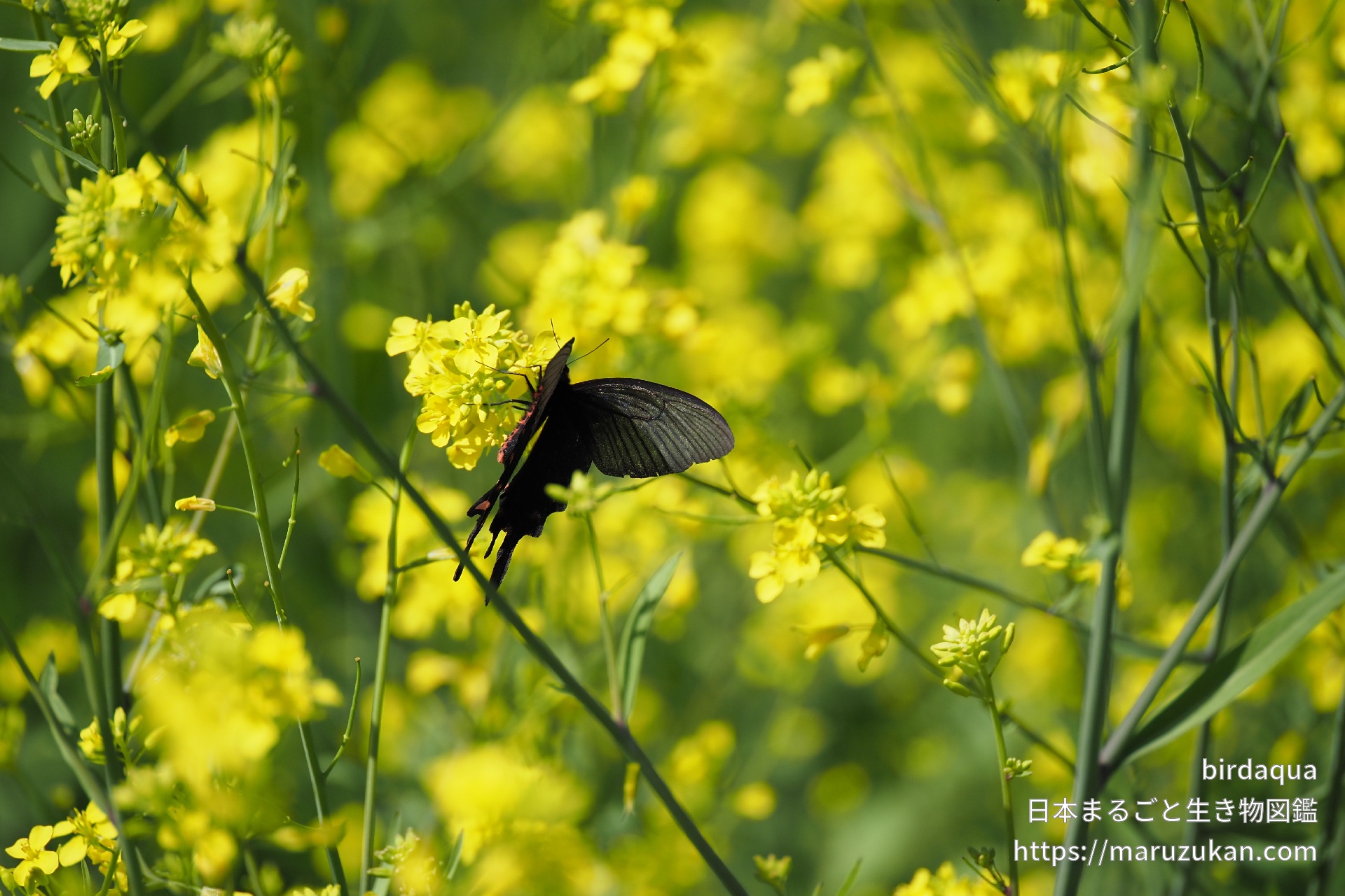 菜の花で吸蜜中。尾状突起がとても長い。