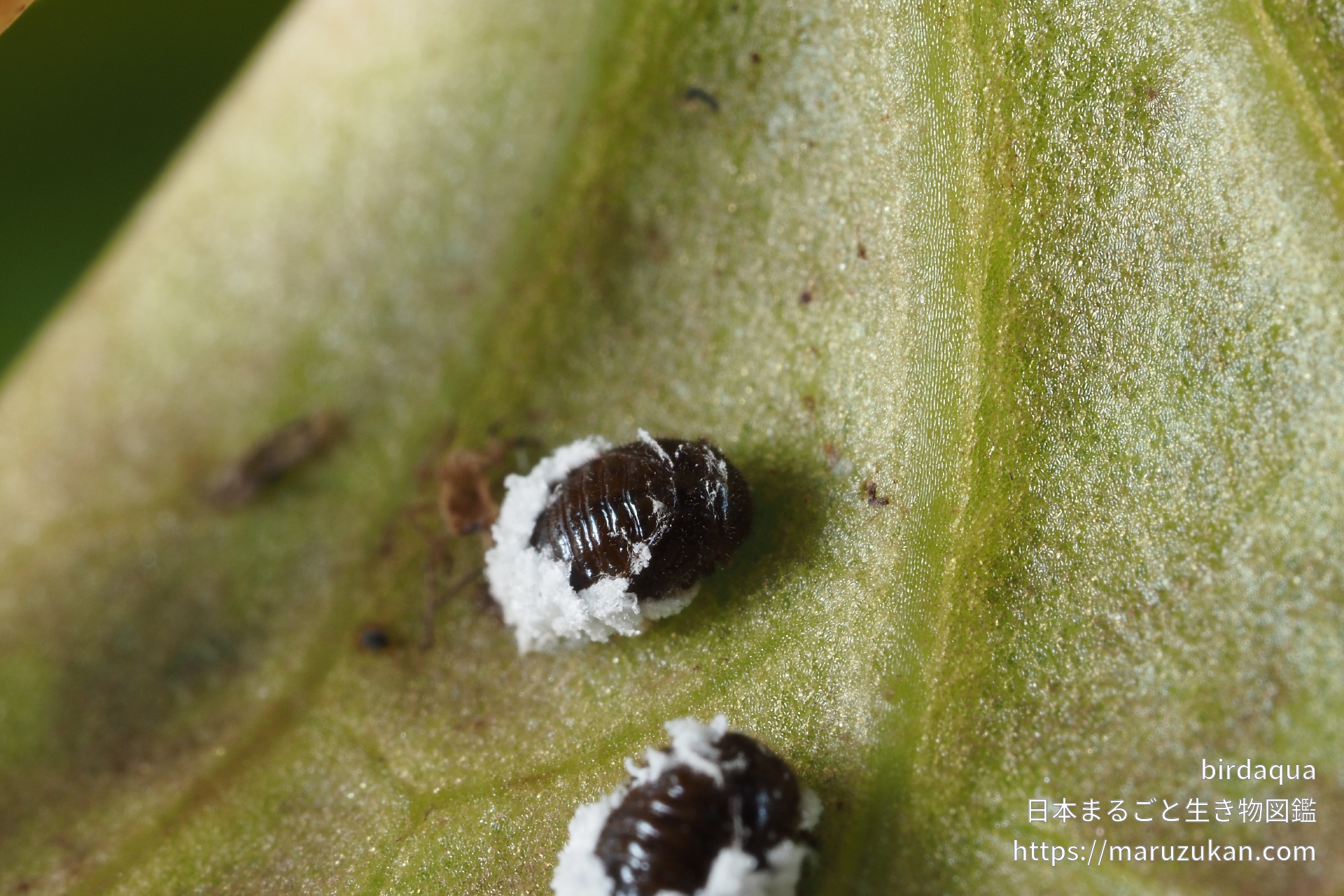 クロヘリヒメテントウの画像を投稿する クロヘリヒメテントウ(黒縁姫天道) -Scymnus hoffmanni- birdaqua 2023/09/26 (火) - 10:17 撮影日2023/08/26 地域 静岡県 撮影・捕獲場所 庭 環境 天然・野生・自生 生育段階 蛹 同定の自信 ★★★★★(種まで確実) 幼虫のときのロウ物質は体の後ろの方に残っている