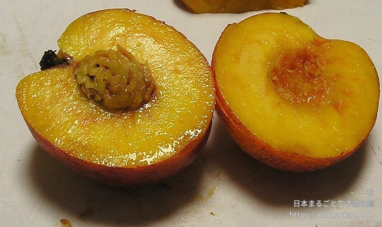 ネクタリンの画像を投稿する ネクタリン -Prunus persica var. nectarina- 一秋 2023/12/10 (日) - 21:26 撮影日2007/08/14 地域 群馬県 撮影・捕獲場所 その他 場所詳細スーパーで購入 環境 人工・飼育・栽培 生育段階 実・種子 同定の自信 ★★★★★(種まで確実) 最後の写真は普通の桃 昔栽培したことがありますが、花などは桃と変わりありませんでした。 コメント TAIJI 2023/12/10 (日) - 23:41