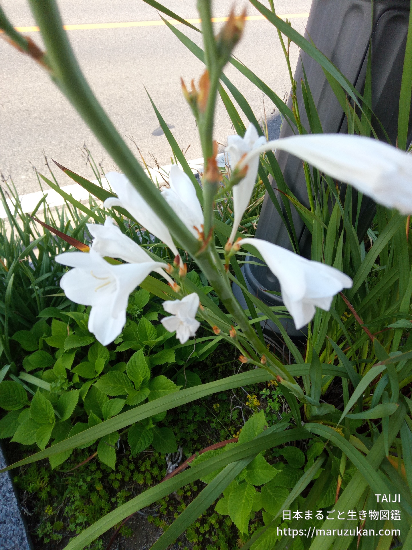 ヒオウギズイセンの画像を投稿する ヒオウギズイセン(檜扇水仙) -Watsonia borbonica- TAIJI 2024/05/19 (日) - 23:38 撮影日2024/05/10 地域 三重県 撮影・捕獲場所 街中 場所詳細街路樹の植え込み。 環境 人工・飼育・栽培 生育段階 花 同定の自信 ★★★★☆(種までほぼ確実) 白花です。