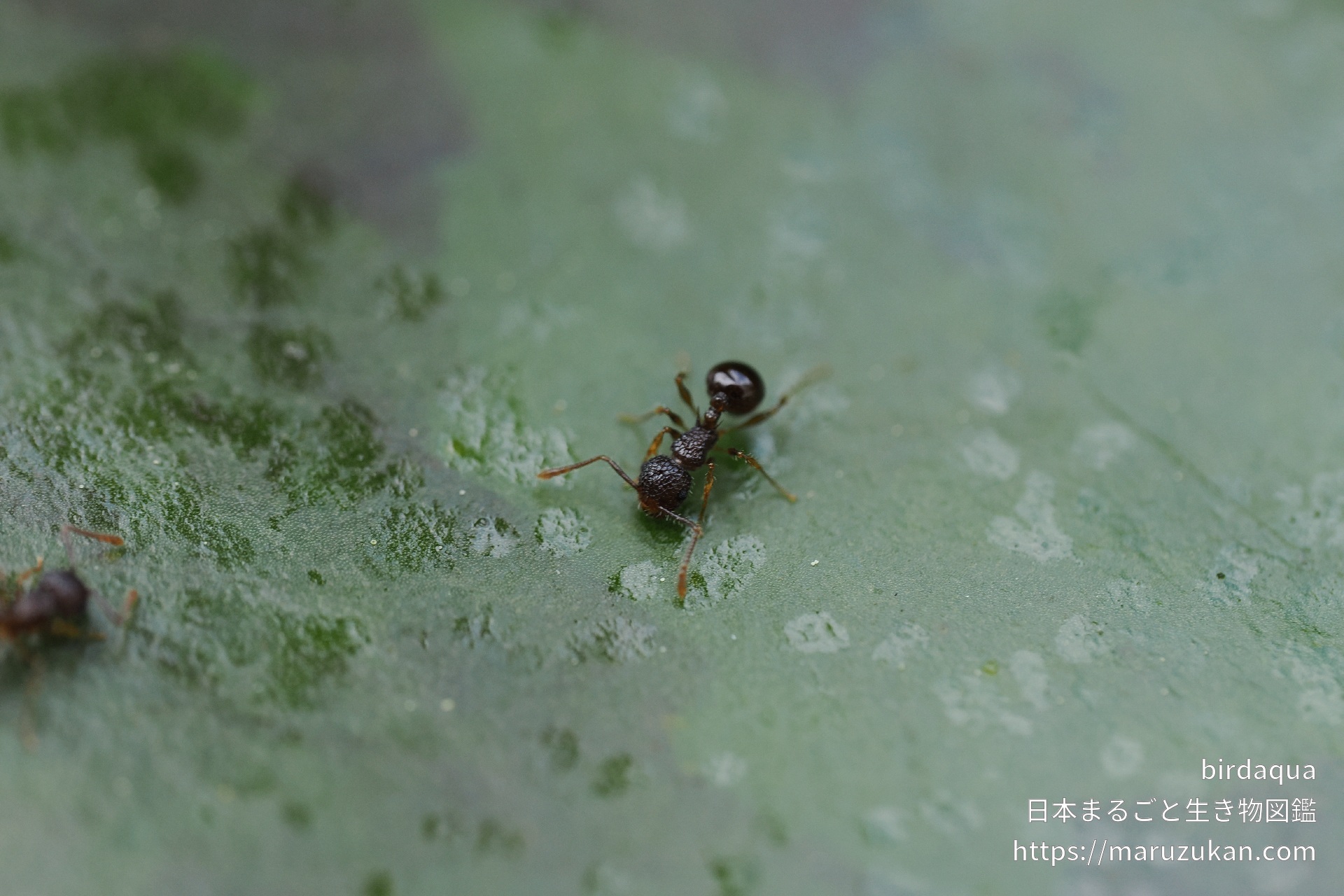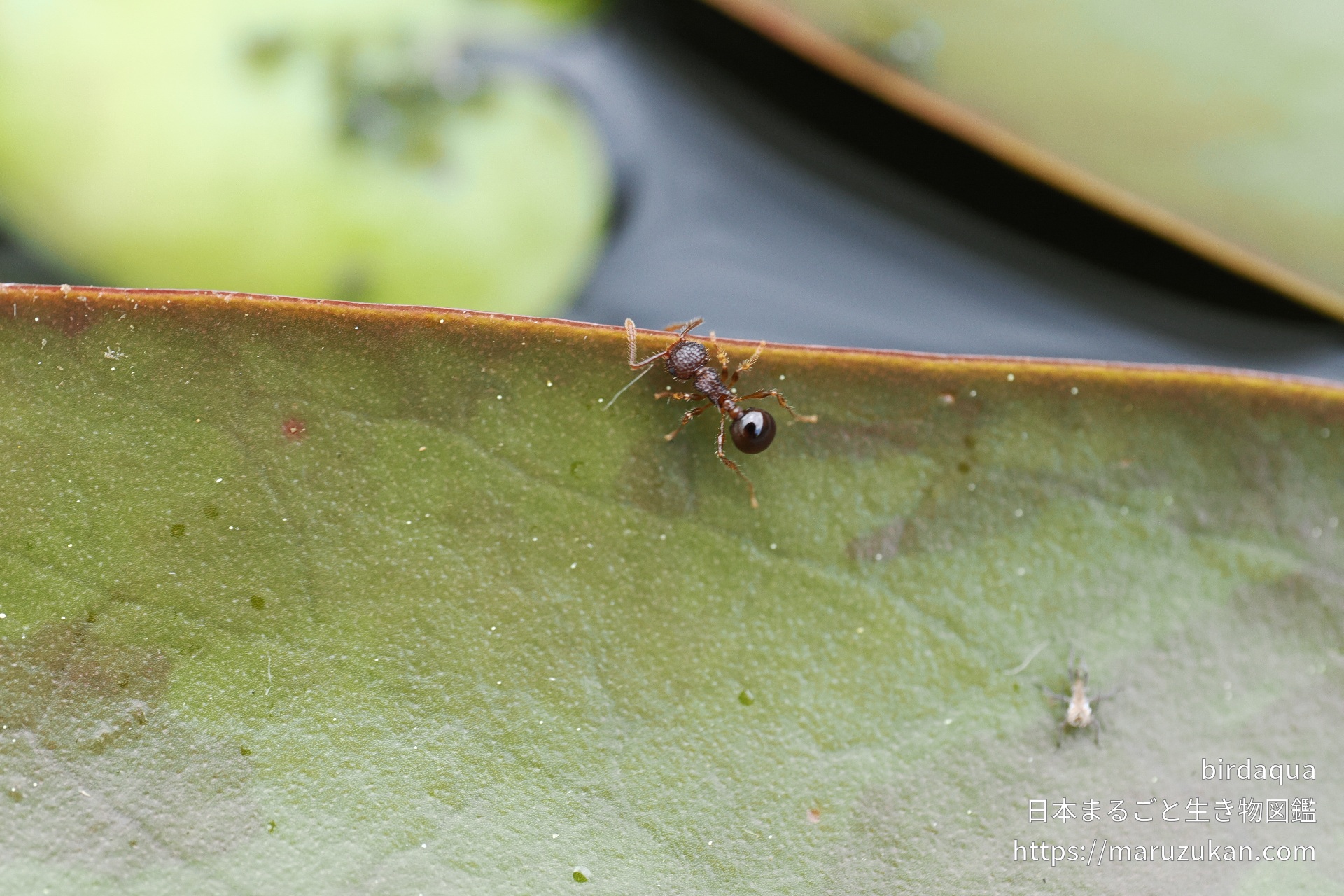 アミメアリの画像を投稿する アミメアリ(網目蟻) -Pristomyrmex punctatus- birdaqua 2024/05/27 (月) - 20:38 撮影日2024/05/25 地域 静岡県 撮影・捕獲場所 庭 雌雄 雌 環境 天然・野生・自生 生育段階 成虫 同定の自信 ★★★★★(種まで確実) スイレンに発生したクワイクビレアブラムシに集まってきている