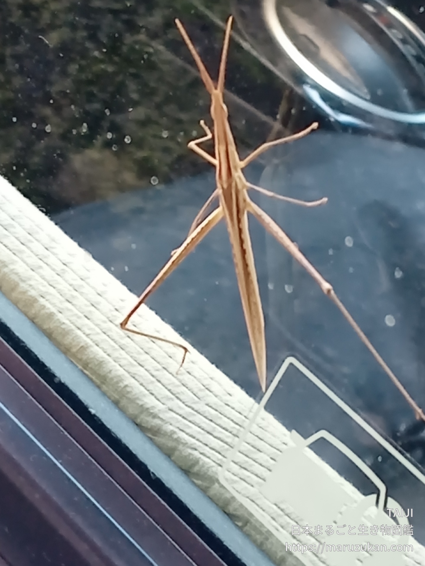 ショウリョウバッタの画像を投稿する ショウリョウバッタ(精霊飛蝗) -Acrida cinerea- TAIJI 2025/08/11 (月) - 19:51 撮影日2025/08/03 地域 三重県 撮影・捕獲場所 街中 場所詳細車の窓 雌雄 雄 環境 天然・野生・自生 生育段階 成虫 同定の自信 ★★★★☆(種までほぼ確実) ショウリョウバッタの褐色型の個体。オスは、首の模様がつながっています。 でも、良い種名を付けてもらっています。精霊(せいれいと書いて、しょうりょうと読む)の飛蝗です。 調べると、お盆の時期に成虫で姿を見るので、「精霊」という種名が付いたそうです。 コメント birdaqua 2025/08/11 (月) - 20:07形がオスのように見えました。写真だとわかりにくくなりますが、ショウリョウバッタの雌雄判別はサイズが確実です。メスはとても巨大です。 TAIJI 2025/08/12 (火) - 23:00さきほど、検索しました。メスの首には模様が切れていて、オスはつながっているように見えます。オスの間違いですね。褐色型は、初めて見たので基準がわかりませんでした。修正します。